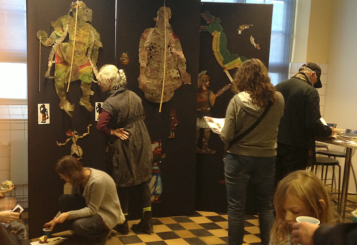Själva gav vi 4 små korta föreställningar som inspirerade publiken att tillverka egna skuggdockor.